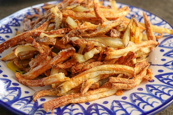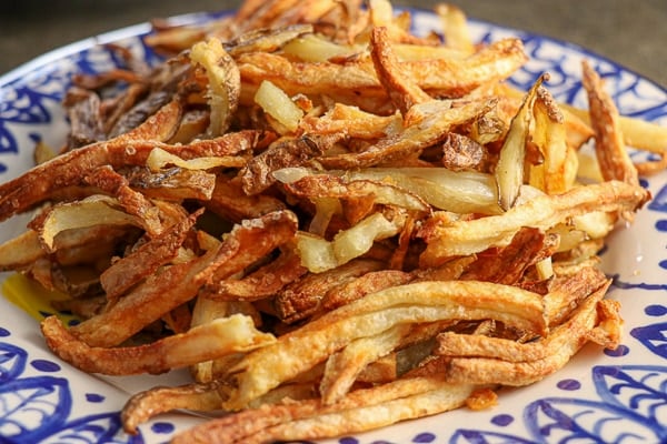 We reimagined the Cheeseburger with a juicy Cheesy Turkey Burger. And what is a great Turkey Burger without fries? FRIES, not carrots, not asparagus fries, not bean sticks or Kale chips - we want long, skin-on, crispy, thin, hand-cut, French Fries made with potatoes. When it comes to fires the most important thing is crispiness, potato flavor, and that pinch of salt. I'm sure if you try these fries you won't even miss the ones from the fast food restaurants.
