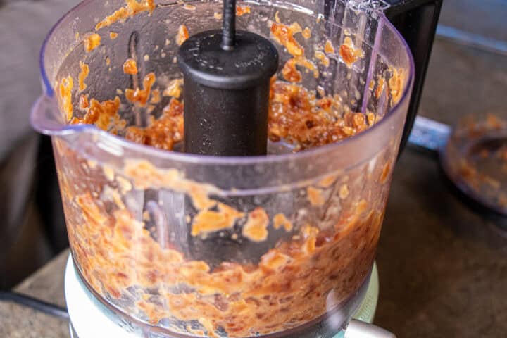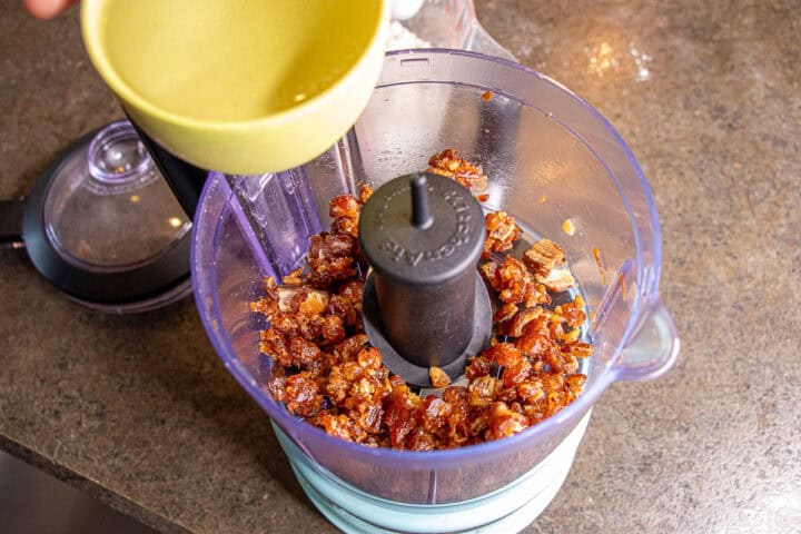 - Puree the Dates in ¼ cup of water. It helps chop up the dates and makes it close to a paste.