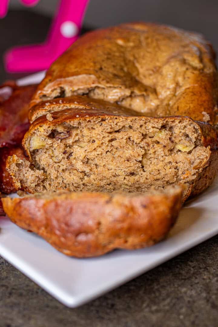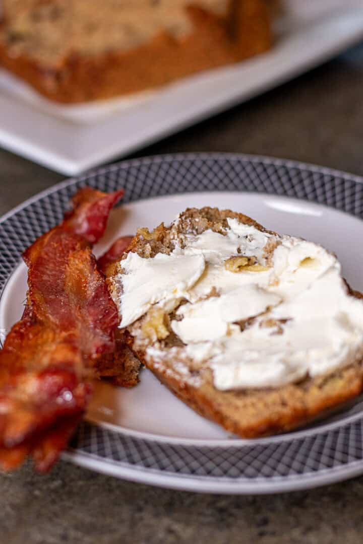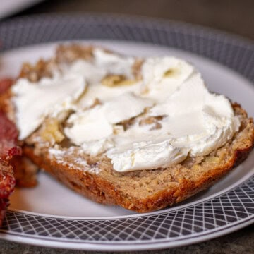 Enjoy! We like to have ours with cream cheese. Here's a little tip: take the cream cheese out of the fridge ahead of time so it can warm up to room temperature. This small step makes the cream cheese much easier to spread on the bread, making this bread even more delicious. And its really good with bacon. . .but isn't everything!!!