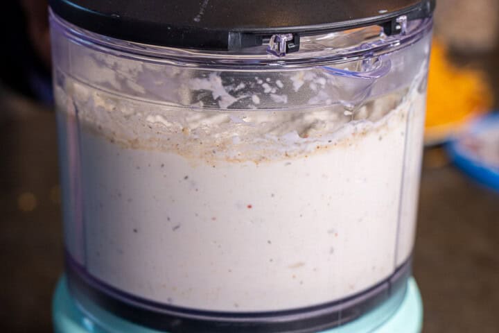 Add the cottage cheese and ranch dressing to a food processor and blend for about 30 seconds until the cottage cheese becomes smooth and creamy.