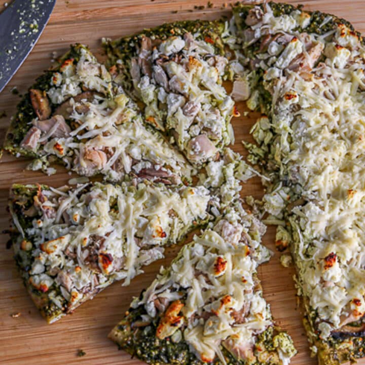 I love a good tomato-based pizza with pepperoni and some Italian sausage. Still, there isn't much better than a pesto pizza—that fresh basil flavor with the spice from the habanero and then the zesty flavor of lemon. For our healthier pesto, we cut out most of the oil. One of the problems with pesto is all the oil, cheese, and nuts. Yes, we cut the pine nuts and used sunflower seeds instead. (That change was due to a tree nut allergy). We use less cheese than traditional recipes, but we've tested it out and feel like we have the perfect blend of cutting back on cheese but not compromising flavor.
