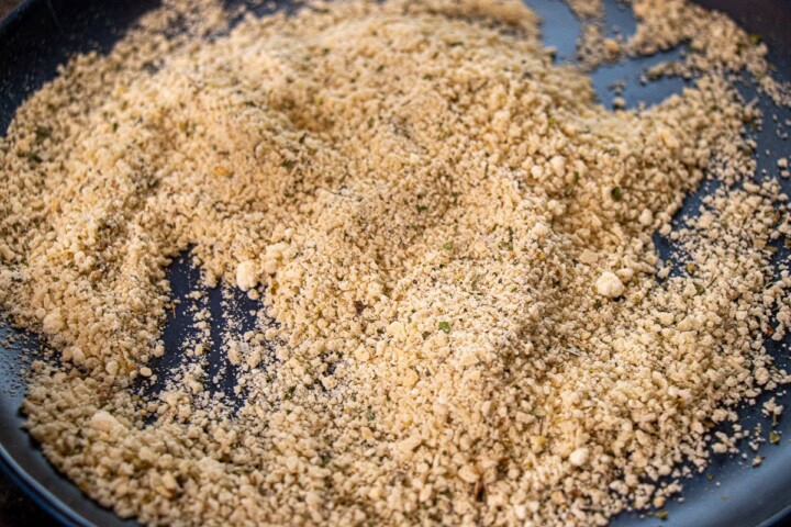 - Mix together in a shallow bowl - Panko, Parmesan Cheese, Oregano, Garlic, and Salt. Beat one egg in a shallow bowl.