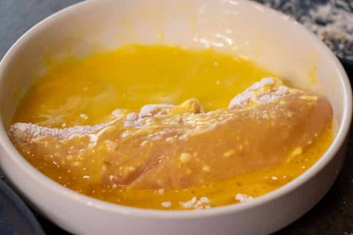 - Dip the chicken breast in the egg.