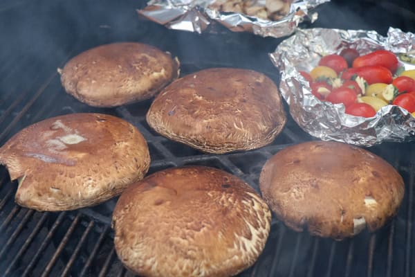 - Place the tomatoes on the grill at the same time as the Mushroom caps